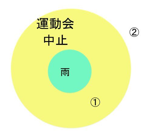 緑の円内なら(雨が降ったら)、必ず黄の円内(運動会中止)です。
